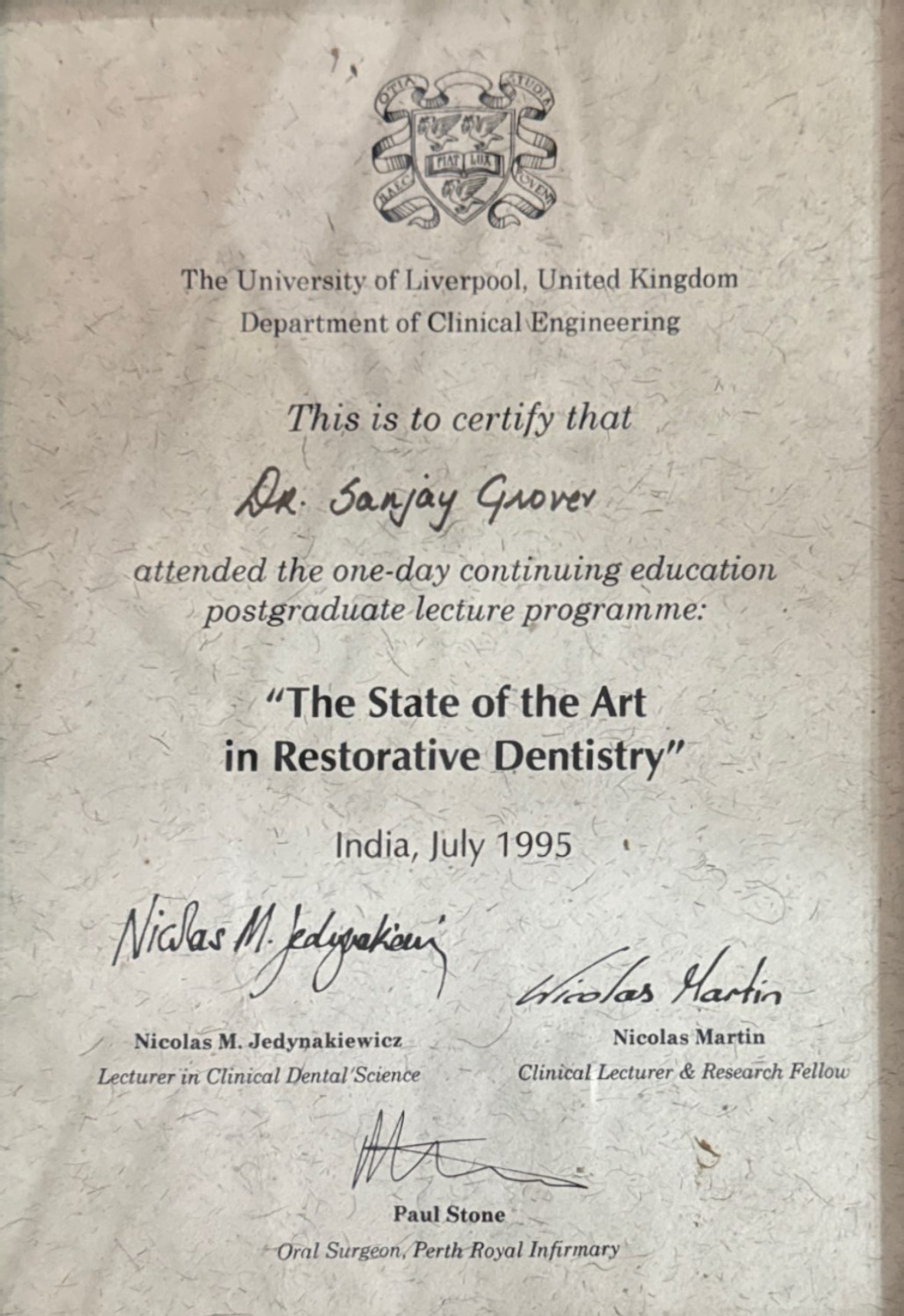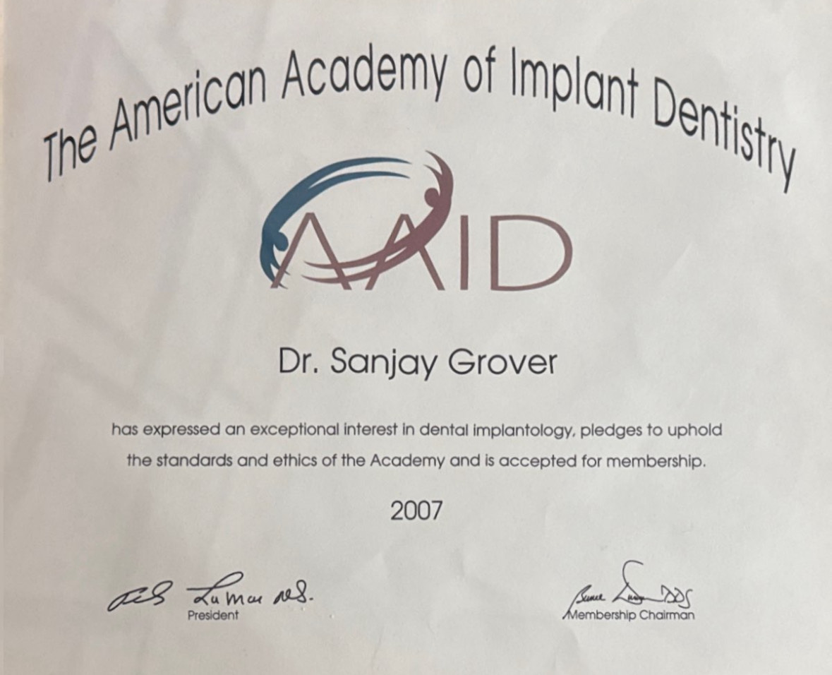 I can't thank you enough for the special, excellent care you have provided and for the unique gift you are to your patients. I am blessed that you are my dentist! I have great confidence in you and your abilities. Thank you so much Dr. Sanjay Grover for the great care and surgery you performed on my tooth implantation.